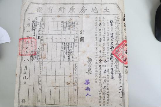 2013年冬至日那天,老母亲去世,享年95岁。在整理母亲遗物的时候,在一只箱子的角落里,发现了母亲一直珍藏着的两张解放初期人民政府颁发的《土地房产证》(以下简称《土地证》)。虽然纸张已经泛黄,但字迹依然清晰可见。其中一张是我祖父陆林献的,颁发日期是1951年7月5日,上面盖有启东县首任县长梁尚人的印章。证书右侧印有“苏北人民行政公署土地房产所有证”字样,刻有启东县人民政府半截方章。左边则是颁发日期,上刻有启东县人民政府方章。编号为启忠字第1284号(“忠”是指当时的圩角区忠群乡)。《土地证》写着:依据中国人民政治协商会议共同纲领第二十七条“保护农民已得土地所有权之规定,确定本户、本人全家所有土地共计(可耕地、非耕地)三块,十四亩四分,房屋共计四间半,地基二块,八分,作为本户本人私有财产,有耕种居住典卖转让等完全自由,任何人不得侵犯”的字样。另一张《土地证》是我父亲的。颁发日期为1951年8月19日,编号为启忠字1081号,载明所有土地3块,七亩一分,房屋二间。两张《土地证》除计开部分的土地、房屋座落不同外,其他内容大致相同。 睹物思人。在我很小的时候,父母亲告诉我,解放前我家十分贫苦。父亲13岁的时候,祖母就去世了。父亲是家里老大,下面有3个年幼的弟弟。祖父含辛茹苦,拉扯4个孩子,一家人过着食不果腹的日子。在1945年我出生的第二年,县里在我家乡进行土地改革试点,祖父和我们一家从地主那里分到了土地。可是仅过去几个月,国民党还乡团反攻倒算,地主又把土地收了回去,并对分得土地的农民威胁恫吓,一家人只得以泪洗面,重新靠给地主富农家打短工度日。 1949年2月启东全境解放,结束了国民党反动统治,贫苦农民翻身解放,又有了自己的土地,勤劳耕作,解决了吃饭问题。我还记得小时候随父母亲去自家的地上,父母在耕作,我在一旁快乐玩耍的情景。 1956年,全国掀起了农业合作化高潮,农村土地所有制形式从私有制变为集体所有制。我家也加入了农业合作社。《土地证》不再具有法律效力。父母亲出于对党和政府的感恩和对美好生活的向往,小心翼翼地把《土地证》珍藏了起来。“老物件”成了传家宝。 《土地证》见证了老区人民翻身史。老区人民永远心向党,听党话,跟党走。 作者:陆建新,启东市老区开发促进会理事 |