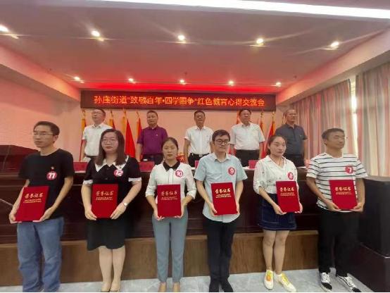 本网讯 9月8日,海安市孙庄街道召开“致敬百年·四学四争”红色教育心得交流会。海安市老区开发促进会负责人吉传稳、顾兴余、陆志强,孙庄街道党工委书记、办事处主任闾文海,孙庄街道党工委副书记贲越,孙庄街道老区促进会常务副理事长马永勤,街道各局办召集人、村党总支书记、青年干部、师生代表等参加会议。 今年以来,海安市孙庄街道通过“讲”“读”“赛”等方式,开展“致敬百年·四学四争”红色教育活动66场次,各文艺小分队开展“万里千家”惠民演出40多场次,撰写学红刊心得体会200余篇,街道公众号对部分优秀的心得文章进行连载。在高新区举办的“传承红色精神、激扬高新力量”微视频、微故事、微党课主题竞赛和“致敬百年·四学四争”红色教育心得交流竞赛活动中,孙庄街道取得了五个第一、三个第二的好成绩,实现了学刊、用刊全覆盖、常态化、见实效,使红色精神落地开花结果。 通过初评、复评、终评三轮评选,12名同志脱颖而出。现场,他们结合亲身经历,与大家分享学习心得。 孙庄街道党工委书记、办事处主任闾文海与会领导共同为12名优秀同志颁发荣誉证书。