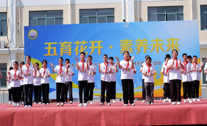 阳光课间环节,全校师生齐聚操场,展现出健康体魄与蓬勃活力。伴随着欢快的音乐,整齐划一、活力四射的花球操表演率先登场。同学们手持五彩花球,随着节奏尽情舞动,跳跃的色彩与灵动的身姿相互映衬,构成了一道亮丽的风景线。随后进行的是一分钟个人跳绳展示,同学们有条不紊地依次登场,脚尖轻点地面,身姿矫健灵活,彩绳飞速旋转。短短一分钟的跳绳展示,成为孩子们展示自我、挥洒汗水的闪耀舞台,也彰显了学校在培养学生运动技能与健康体魄方面的不懈努力。