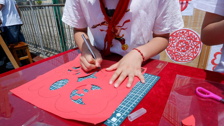 社团展示环节堪称百花齐放,传统文化与现代创意在这里完美交融。书法社团的同学们挥毫泼墨,笔锋遒劲有力,行云流水间尽显汉字之美;围棋社团的对弈桌前,棋手们凝神屏气,黑白棋子在棋盘上巧妙落位,暗藏无尽谋略;剪纸与手工编织展台前,精巧绝伦的窗花、色彩斑斓的蛋袋编织作品吸引了众多目光;美术社团的同学们则通过拓印技艺,将自然的纹理转化为斑斓的艺术作品,生动展现了艺术与生活的紧密联系:小记者用稿栏引人注目……这些社团各展风采,勾勒出校园德智体美劳“五育融合”的生动图景。