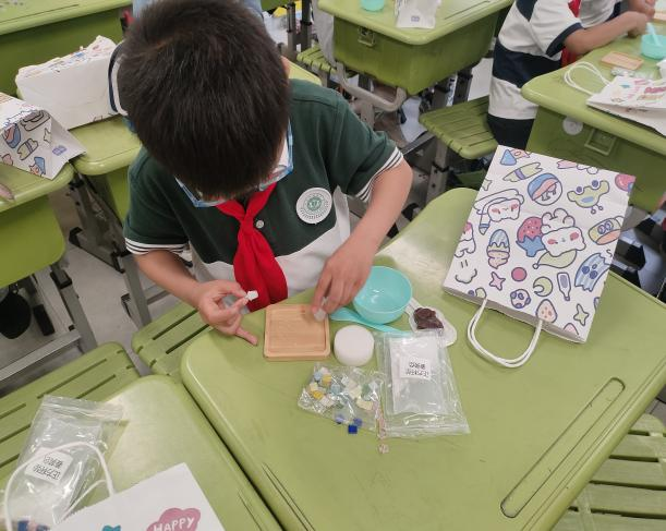 创意手工 传递清朗理念 活动最后,手工杯垫制作环节激发了同学们的创作热情。在社区志愿者的指导下,大家用彩笔在杯垫上绘制“抵制谣言”“文明上网”等主题图案,将对网络安全的理解转化为生动的艺术创作。顾同学一边制作杯垫一边说:“我要把这个杯垫送给爸爸妈妈,和他们一起做不造谣、不信谣、不传谣的好网民。”这些承载着网络安全理念的手工杯垫成为同学们向家人、朋友传递清朗网络意识的桥梁。