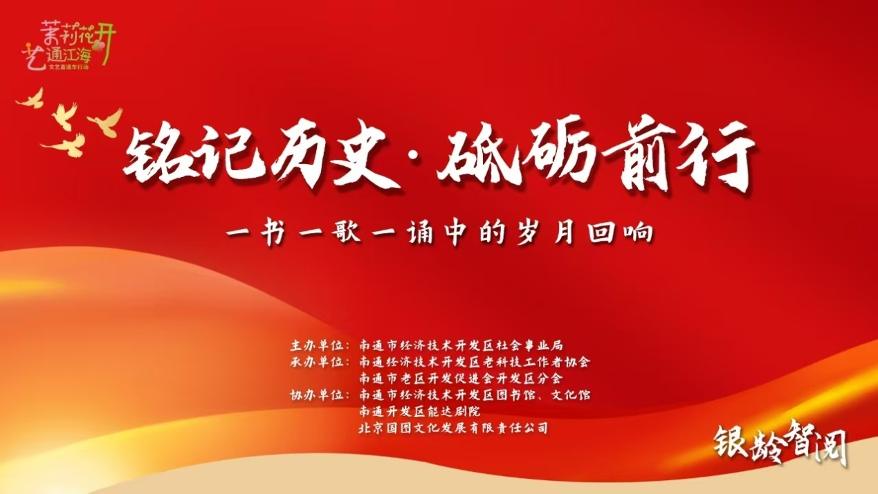 开发区老促会 顾亮 岁月如诗,家国似画。9月1日下午,南通经济技术开发区能达剧院内华灯璀璨、乐声激昂,一场以“铭记历史·砥砺前行——一书一歌一诵中的岁月回响”为主题的文化盛宴在此拉开帷幕。活动由南通市老促会开发区分会会同开发区老科技工作者协会承办,参与策划、组织并承担部分节目的演出工作,以文艺为媒、以历史为魂,打造了一堂沉浸式“文艺党课”,引领观众在光影与歌声中触摸红色记忆,于诗行与舞姿里汲取奋进力量。