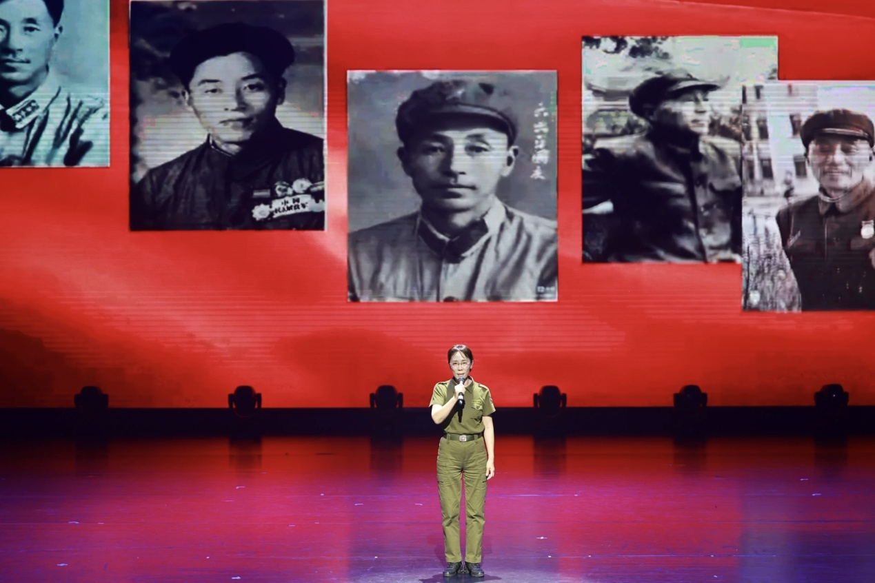 活动以短片《光影忆峥嵘》震撼开场,黑白影像如时光隧道,将观众带入战火纷飞的年代。一曲《英雄赞歌》紧随其后,演唱者以穿云裂石之声,将对英烈的追思化作激昂旋律,点燃全场热情。革命后代黄芳三兄妹诗朗诵《我爱这土地》则以沉郁而炽热的声线,将“为什么我的眼里常含泪水?因为我对这土地爱得深沉”的赤子情怀,化作观众心中的层层共鸣。《歌声里的抗战》书籍分享环节,讲述者将经典歌曲背后的故事与书本文字融合,点燃爱国热情。 经典传唱 奋进号角响彻云霄