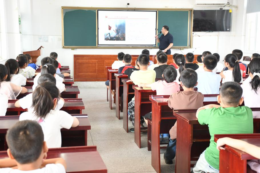 课堂上,李红健校长围绕多个核心环节展开。在“铭记历史”部分,他向学生们介绍9月3日中国人民抗日战争胜利纪念日的由来,通过1945年抗战胜利的历史背景,以及3500万人员伤亡、超5000亿美元经济损失、225.3万先烈牺牲等数据,结合杨靖宇、狼牙山五壮士等英雄事迹,让学生深刻认识到抗战胜利的来之不易。