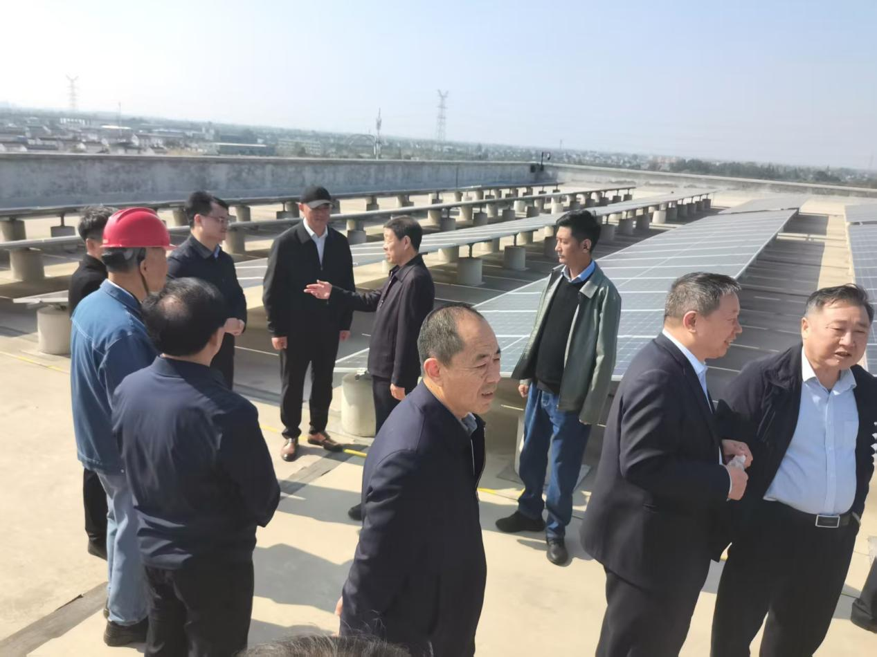 随后,考察团前往南通市农业农村局、海安市老区开发促进会、海安市慈善总会联合授牌的“爱心企业”——创能电气科技(南通)股份有限公司,实地考察贲集、古贲、噇口三村联建的光伏帮扶电站。工作人员以“破局增收困境,光伏项目落地生根”“深化村企合作,帮扶模式高效复制”“全域推进覆盖,富民强村成效凸显”为核心,详细介绍了大公镇光伏帮扶助力乡村振兴的具体路径:通过推广“一村一企”“多村一企”的村企合作模式,全力推进光伏帮扶“整镇推进、村村覆盖”项目建设,全镇15个光伏帮扶项目总投资254万元,全部建成运行后,村级集体经济每年可新增收益120万元左右,按每户救助500元标准计算,每年可帮扶困难农户1200户,为巩固脱贫攻坚成果、构建和谐社会提供坚实保障。实践充分证明,光伏帮扶项目是利村、利民、利企的惠民工程,而村企合作则是实现产业振兴与村级集体经济增收“双赢”的核心路径。
