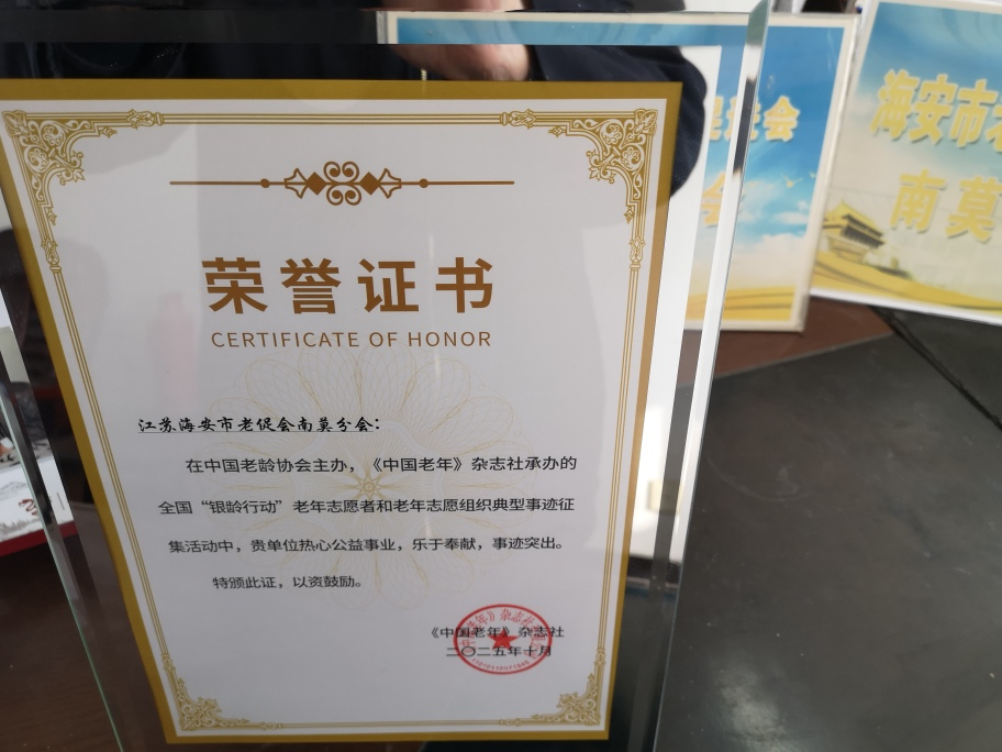 岁月序开,频传喜讯。元月初始,海安市老促会南莫分会收到中国老龄委颁发的“银龄心向党 执笔颂华章”征文优秀组织奖荣誉证书和南莫老促会5位会员征文作品入围全国主题征文汇编的喜讯。这是南莫镇分会继2025年底荣获全国老区宣传优秀奖、征文组织奖、全国银龄行动先进志愿者典型征集10大先进集体奖以来的第4个“国家级”奖牌。