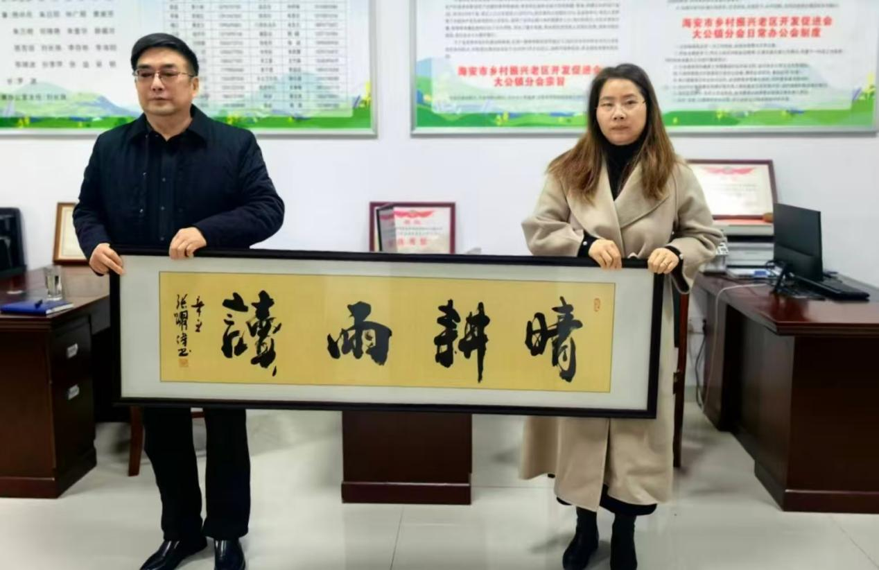 仪式现场暖意融融,镇分会还特意为女企业家王爱英赠送“晴耕雨读”牌匾。这四字不仅承载着传统生活智慧,更寓意着顺境时躬身实干、深耕事业,闲暇时沉淀自我、修心增智,既贴合企业家脚踏实地、奋勇拼搏的奋斗状态,也彰显了从容雅致的人生态度,褪去功利、温润走心,恰如其分地传递出对女企业家实干兴邦、温润前行的美好期许。 三位入选者深受鼓舞、倍感荣幸,纷纷表示,这份荣誉不仅是对个人工作的肯定,更是对所有老区建设者的激励与鞭策,衷心感谢镇党委、政府对分会工作的高度重视和大力支持,感谢海安市“两会”的亲切关怀和充分认可,感谢中国老促会授予的这份崇高荣誉。他们一致表示,这份荣光属于每一位为海安老区默默奉献的建设者,属于奋力推动大公经济社会高质量发展的全体人民。今后,将以这份荣誉为新的起点,牢记初心使命、传承红色基因,把荣誉转化为干事创业的强大动力,立足本职、接续奋斗,在深入开展“新时代老区情新征程老区行”红色教育活动中勇担使命,在服务乡村振兴、促进共同富裕的道路上奋勇前行,为老区振兴发展贡献更多力量。 供稿:海安市“两会”大公镇分会 王瑞华 刘长珠 |